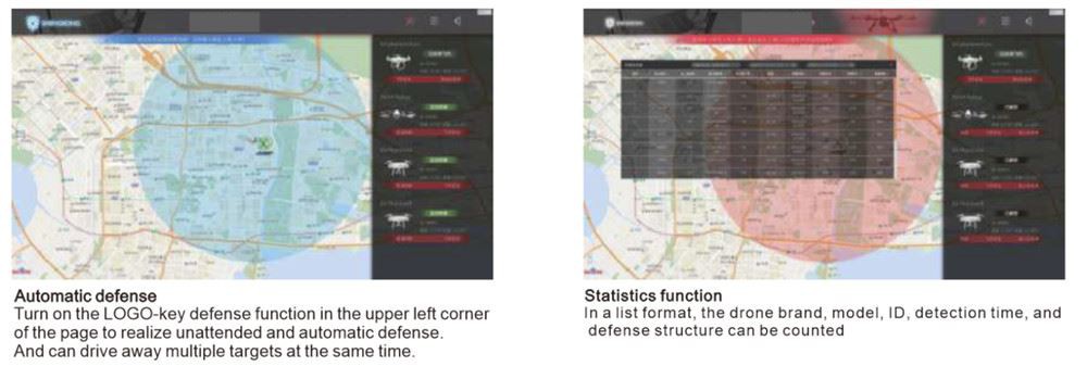 برای پهپادهای متجاوز، میتوانید این موارد را انتخاب کنید: یک-دفاع خودکار کلیدی: پس از فعال شدن عملکرد دفاعی سیستم، پهپاد نفوذی بهطور خودکار توسط سیستم بدون پرسنل در حال کار دفاع میشود. مداخله دستی: شما می توانید به صورت دستی دفاع از هر هواپیمای بدون سرنشین و نحوه دفاع از زمان را انتخاب کنید یا دفاع را قطع کنید و می توانید موقعیت خلبان را انتخاب کنید.